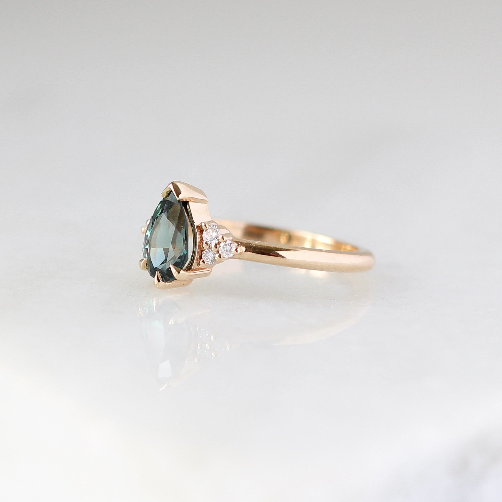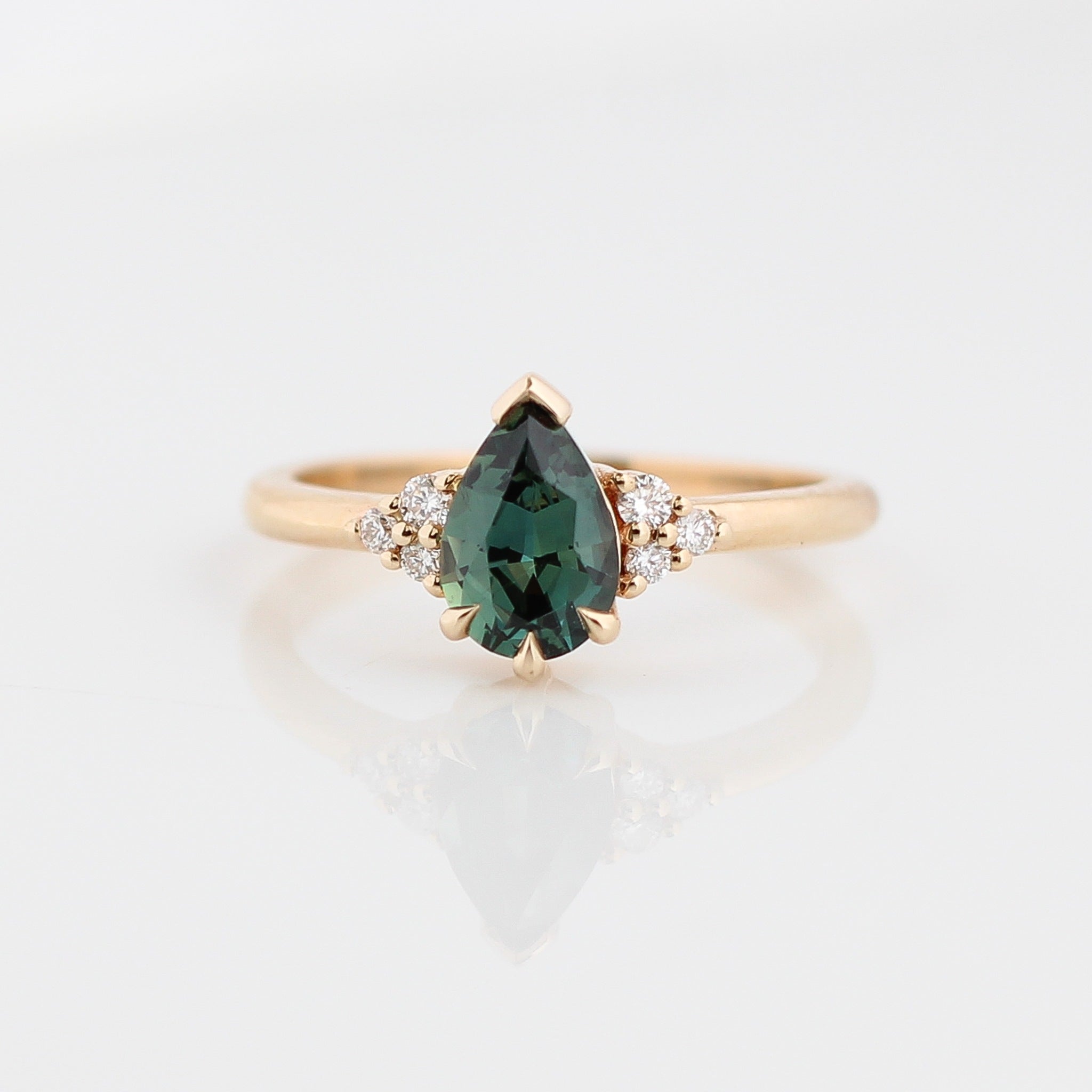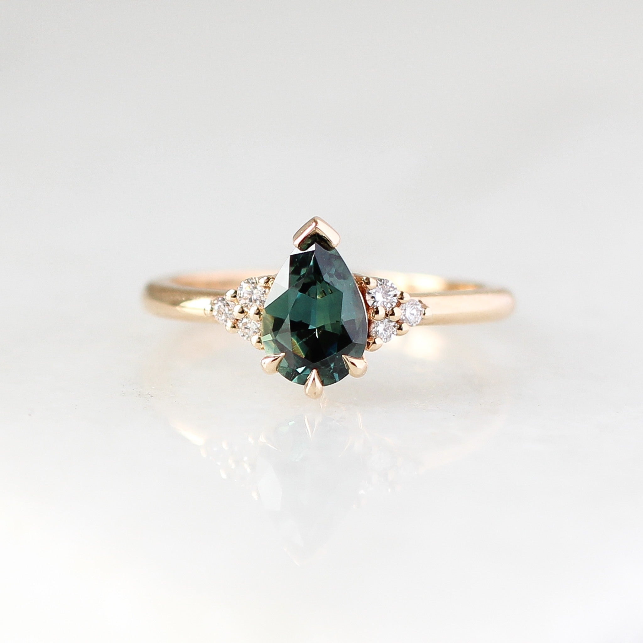 1.17ct Glacier Pear Teal Green Sapphire Ring