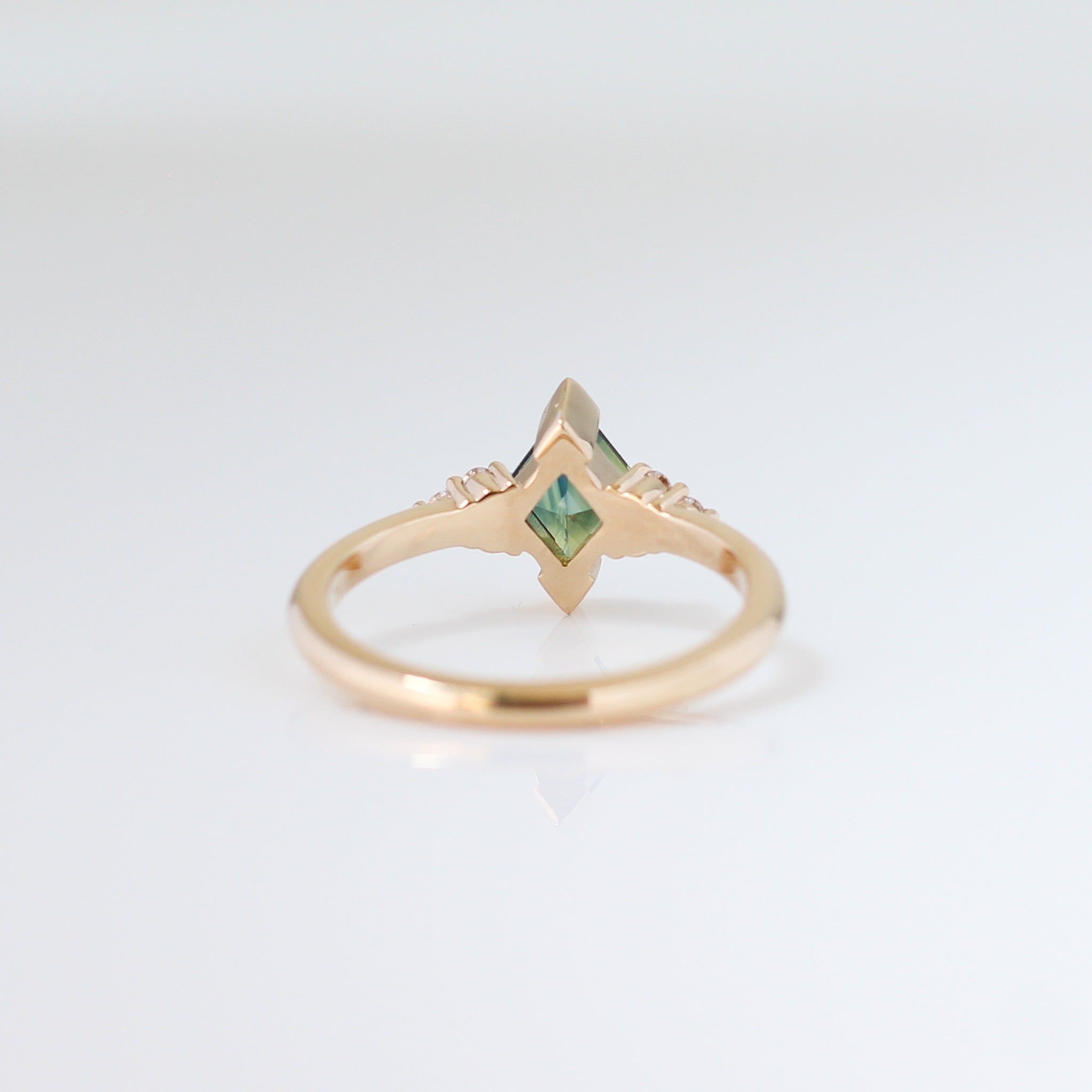 Misceo Emerald Cut Green Sapphire Ring detailed front view