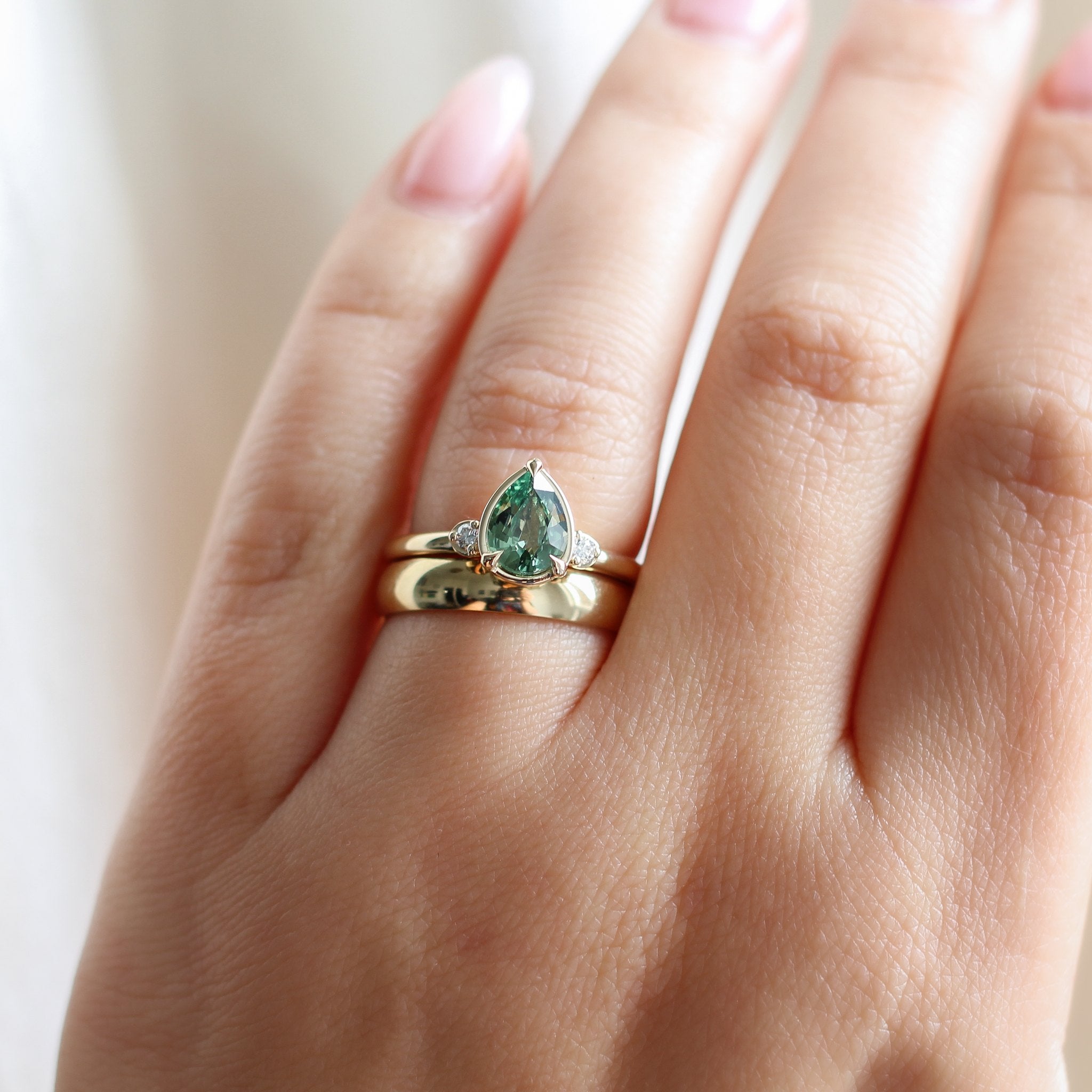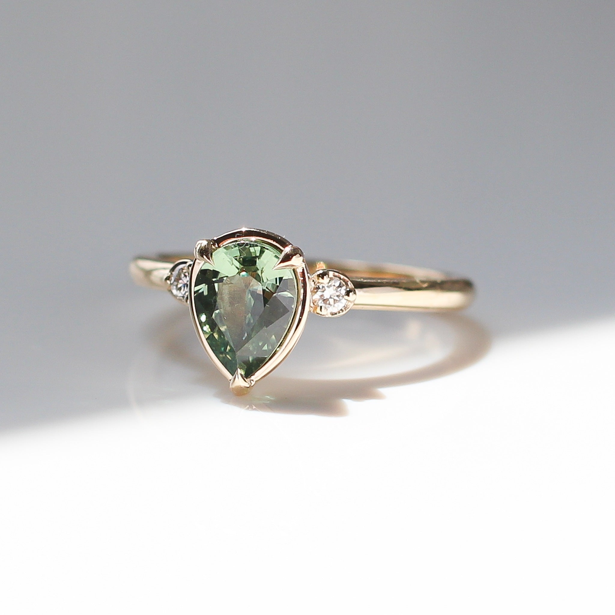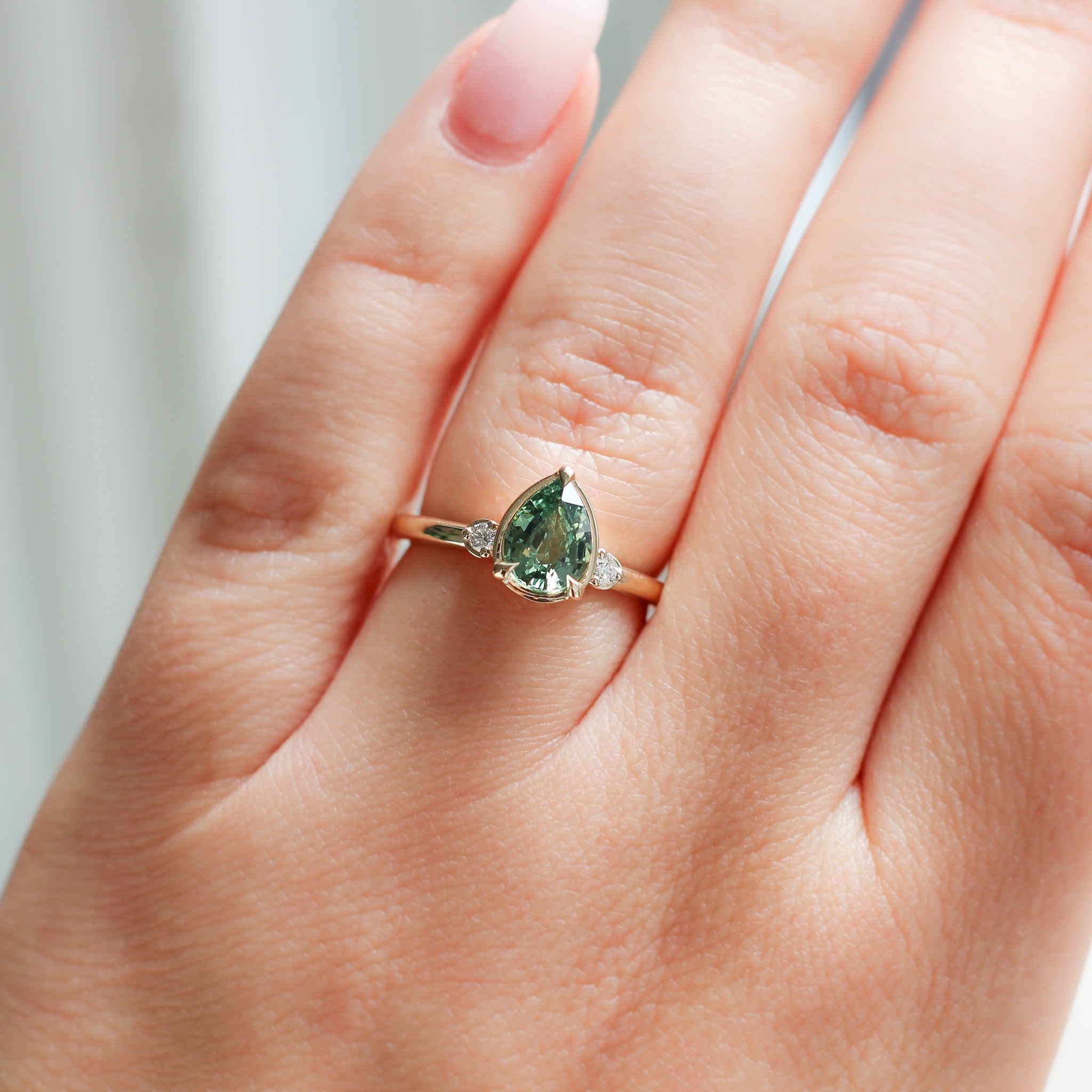 1.17ct Glacier Pear Teal Green Sapphire Ring