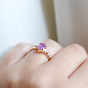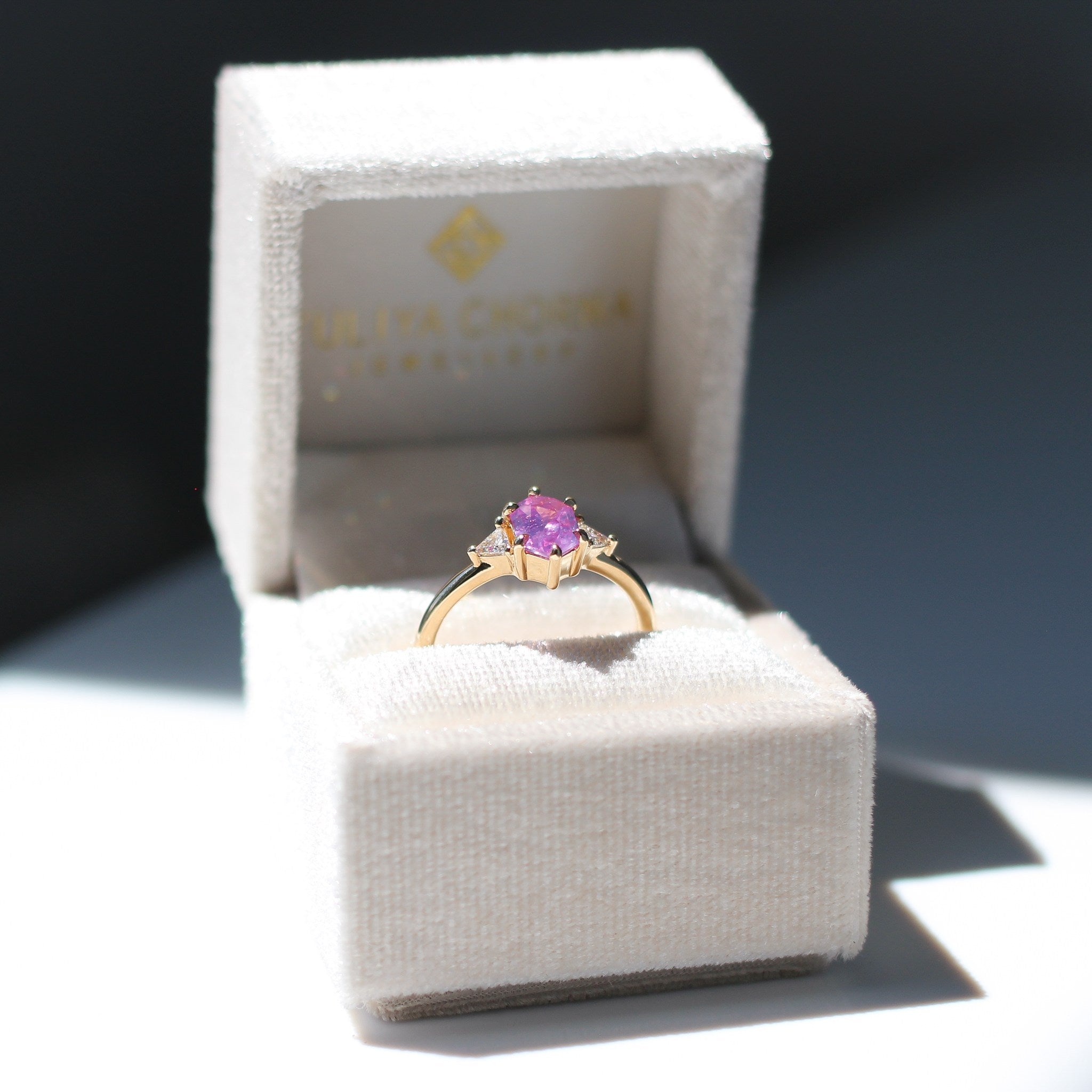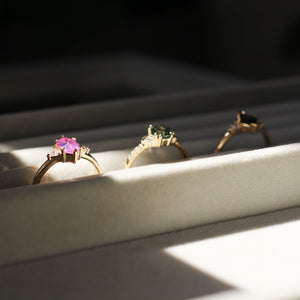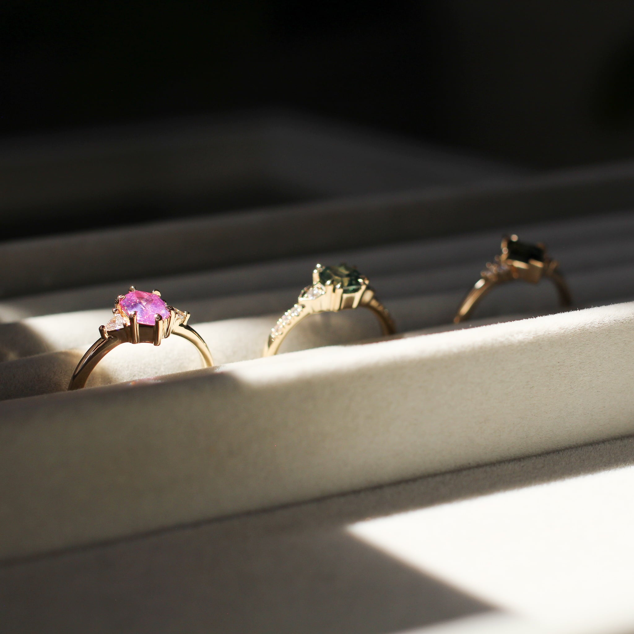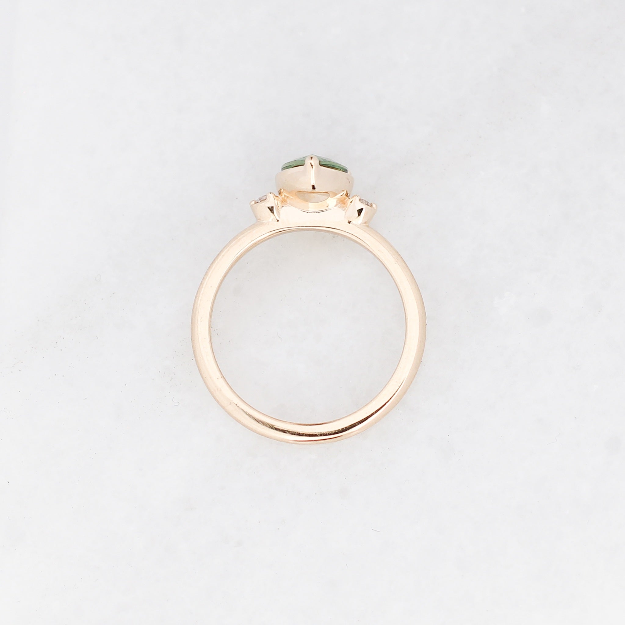 Lagoon Pear Green Sapphire Ring quarter front view on cloth