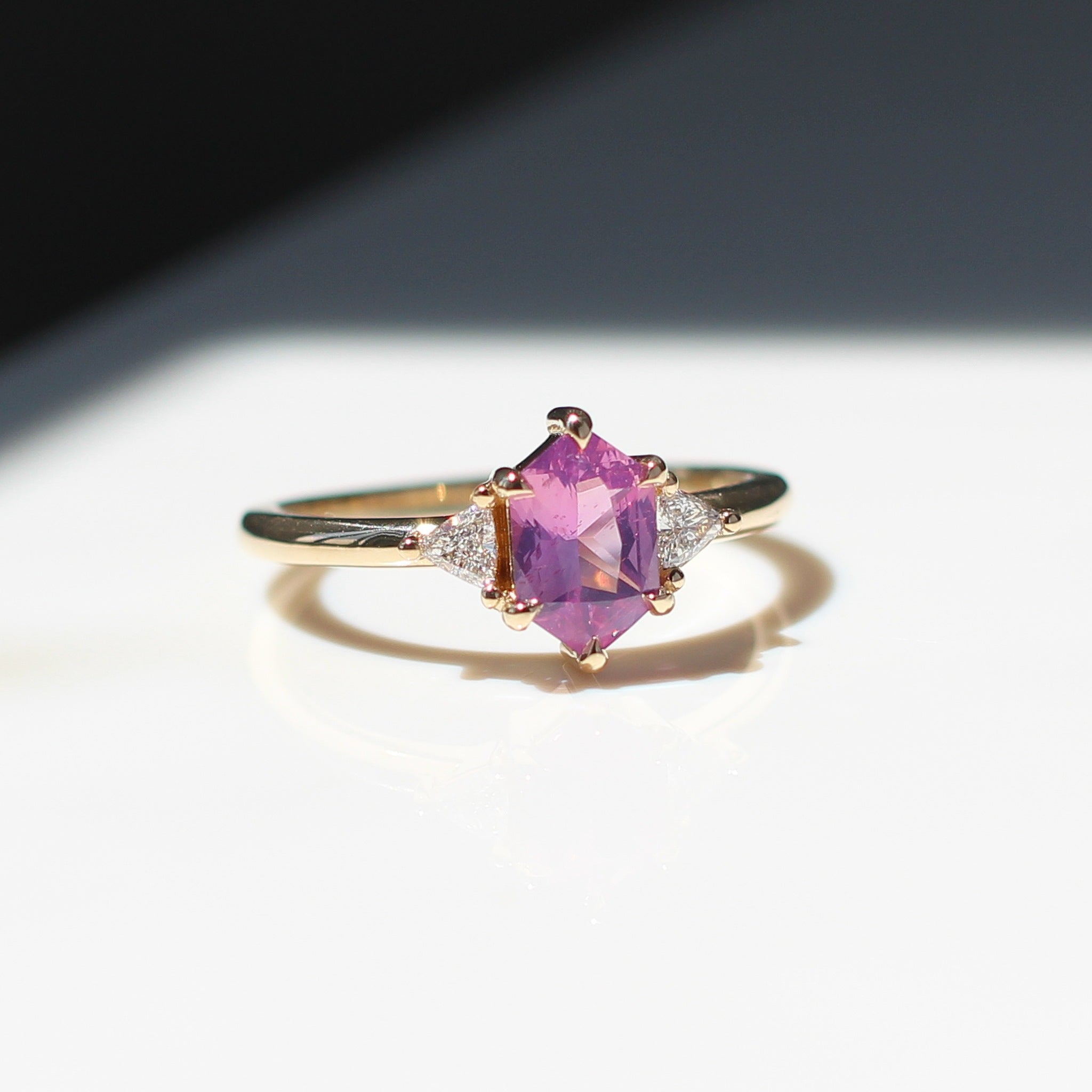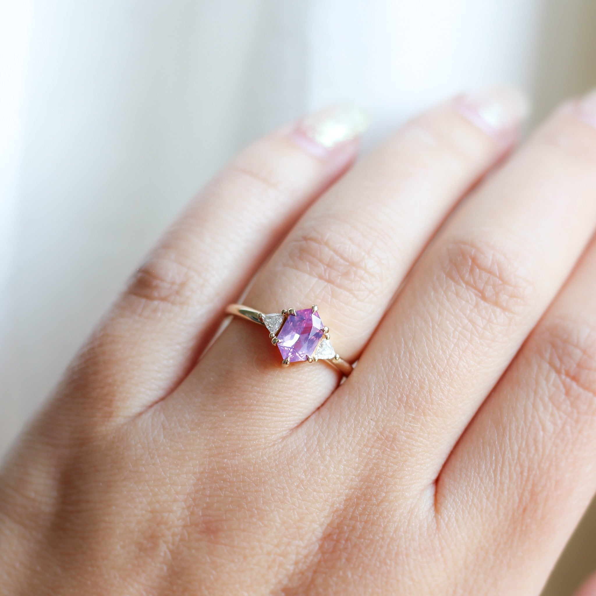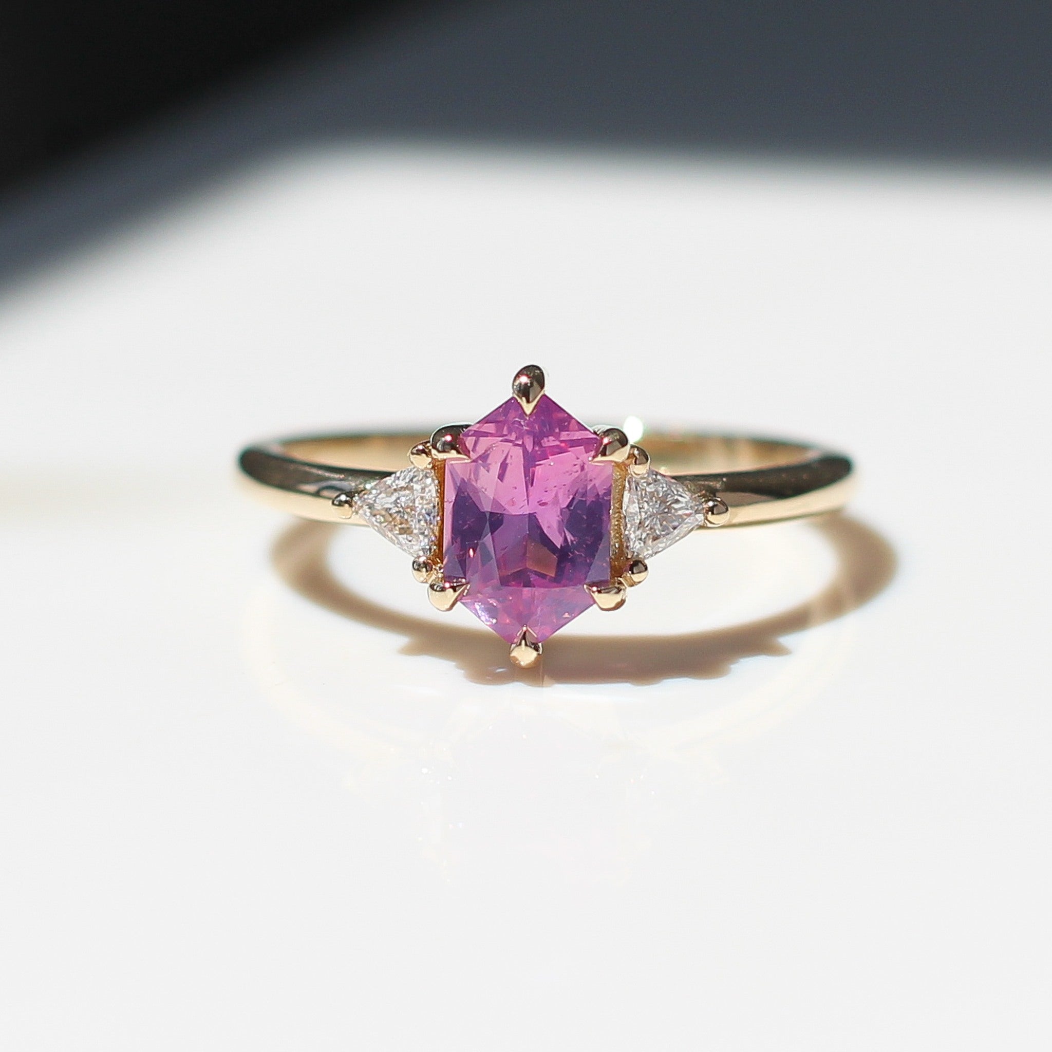 Misceo Emerald Cut Green Sapphire Ring front view on fabric