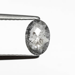 Oval Brilliant cut diamond ring paired with 2 diamond and gold stacking bands detail quarter view