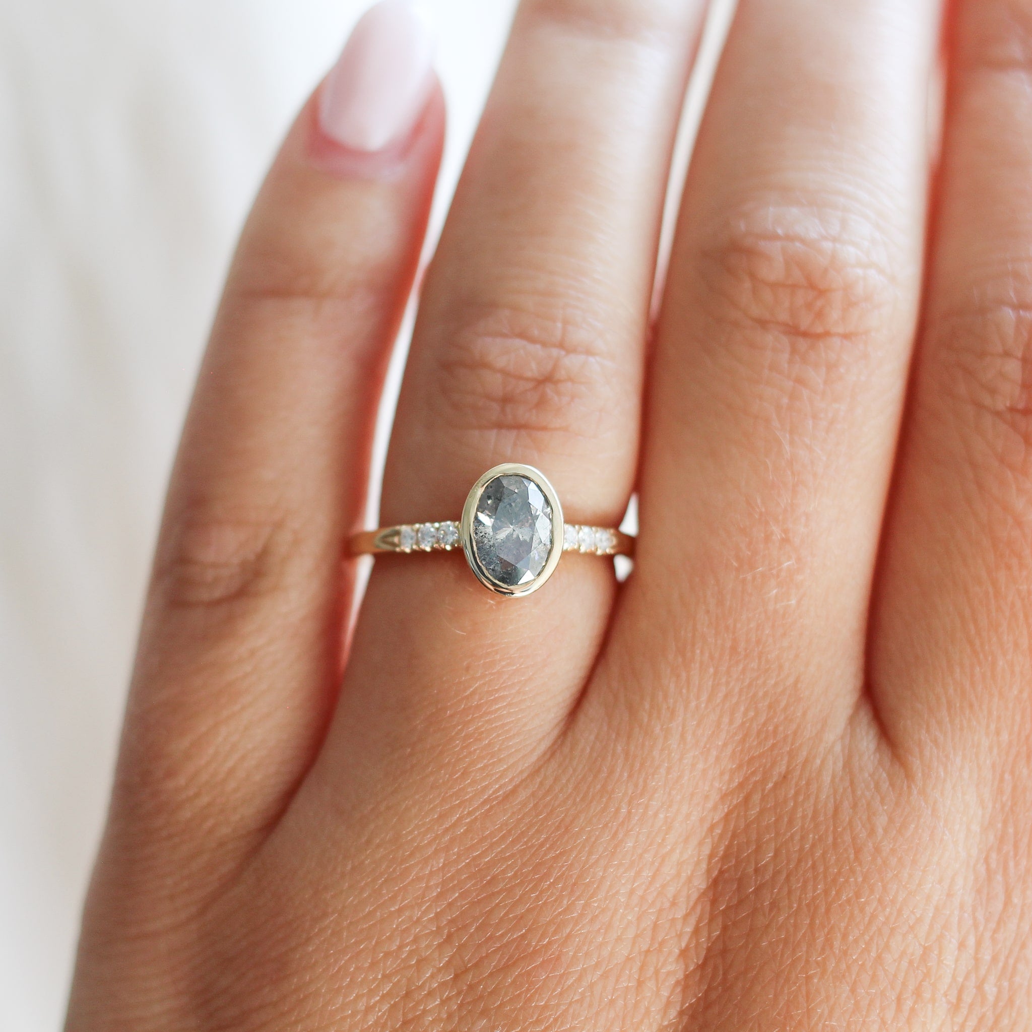 1.07ct Oval Bezel Salt and Pepper Diamond Ring