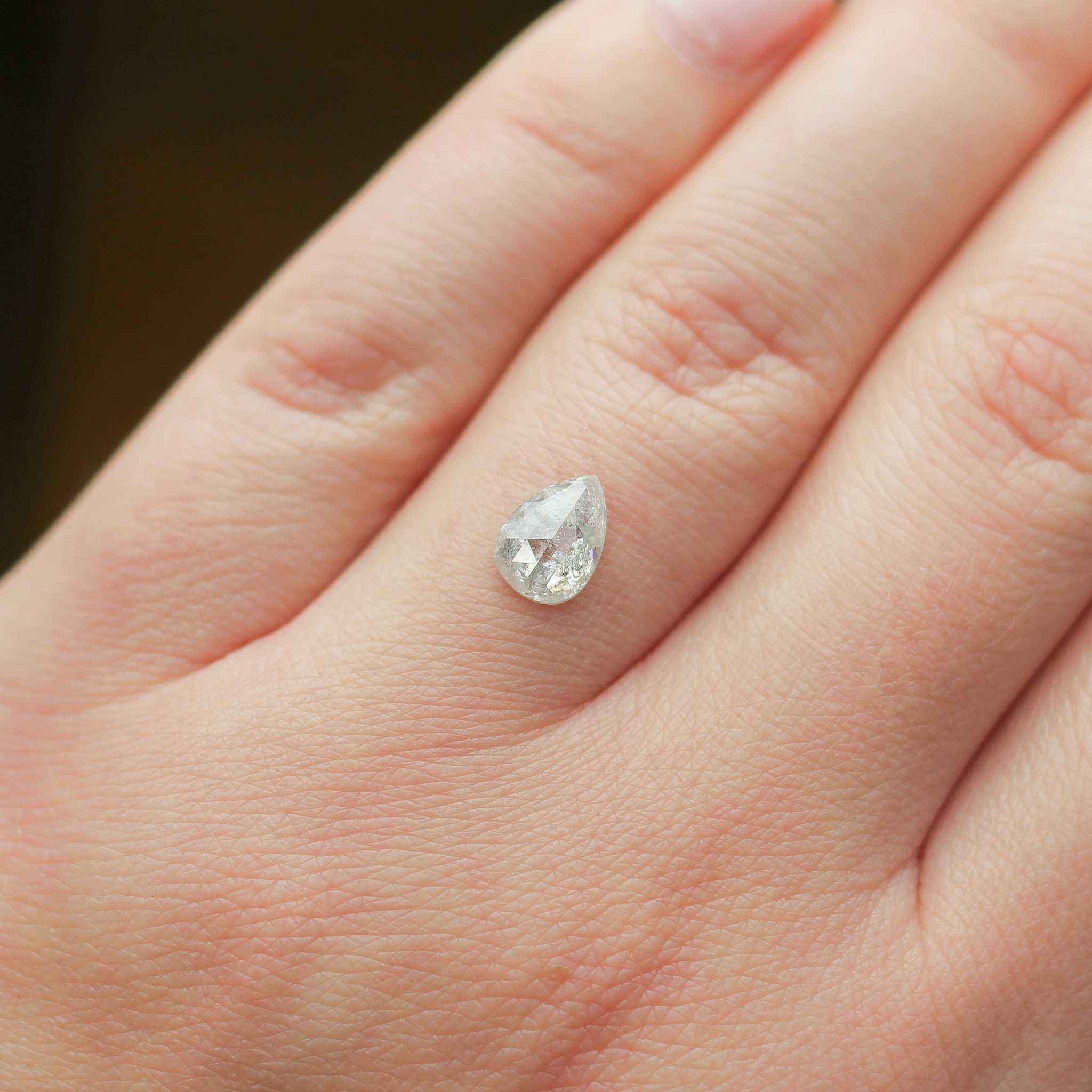 1.19ct natural pear shaped rose cut icy salt and pepper diamond (8.19x5.9mm).