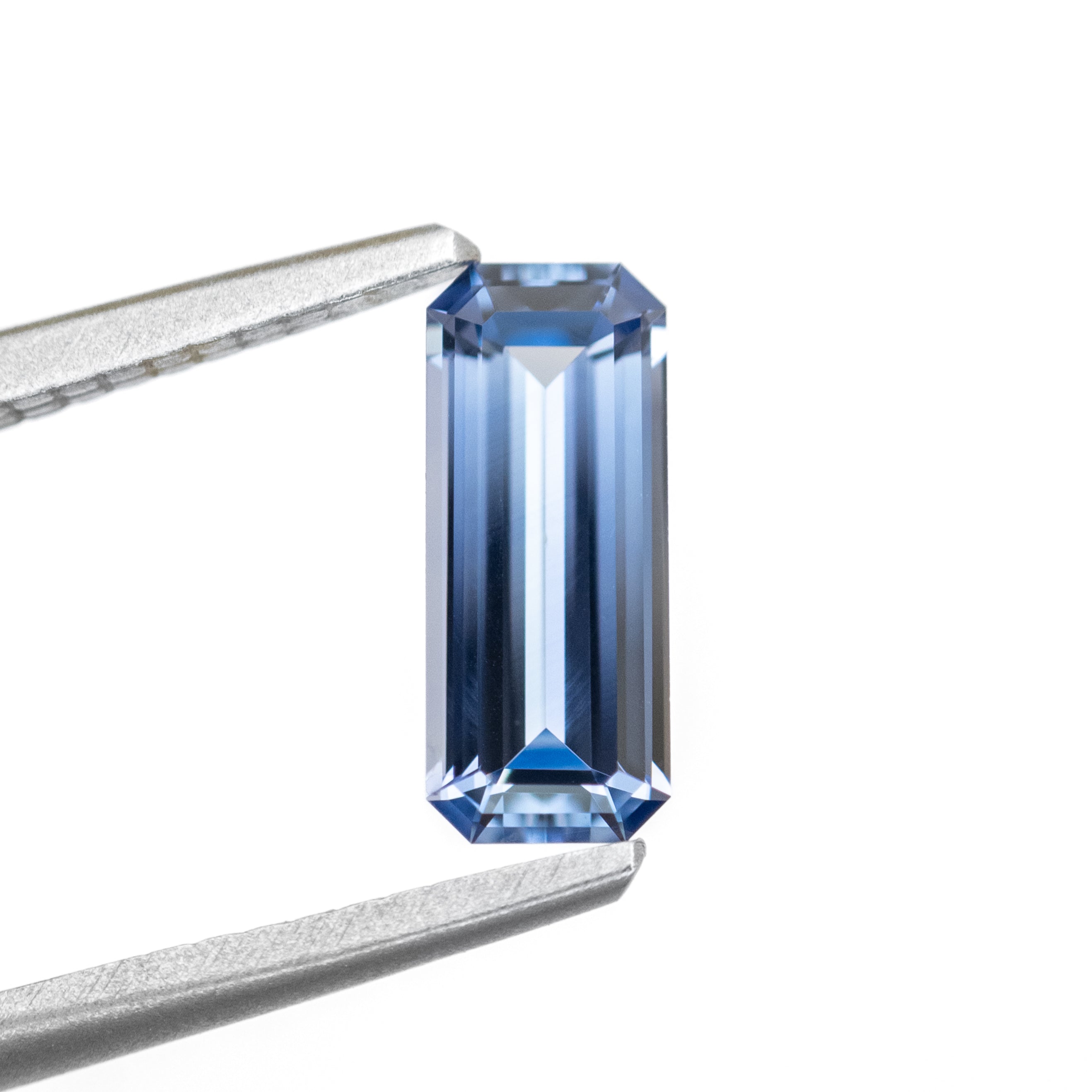 0.95ct natural emerald cut light blue sapphire (9.2 x 3.8mm).