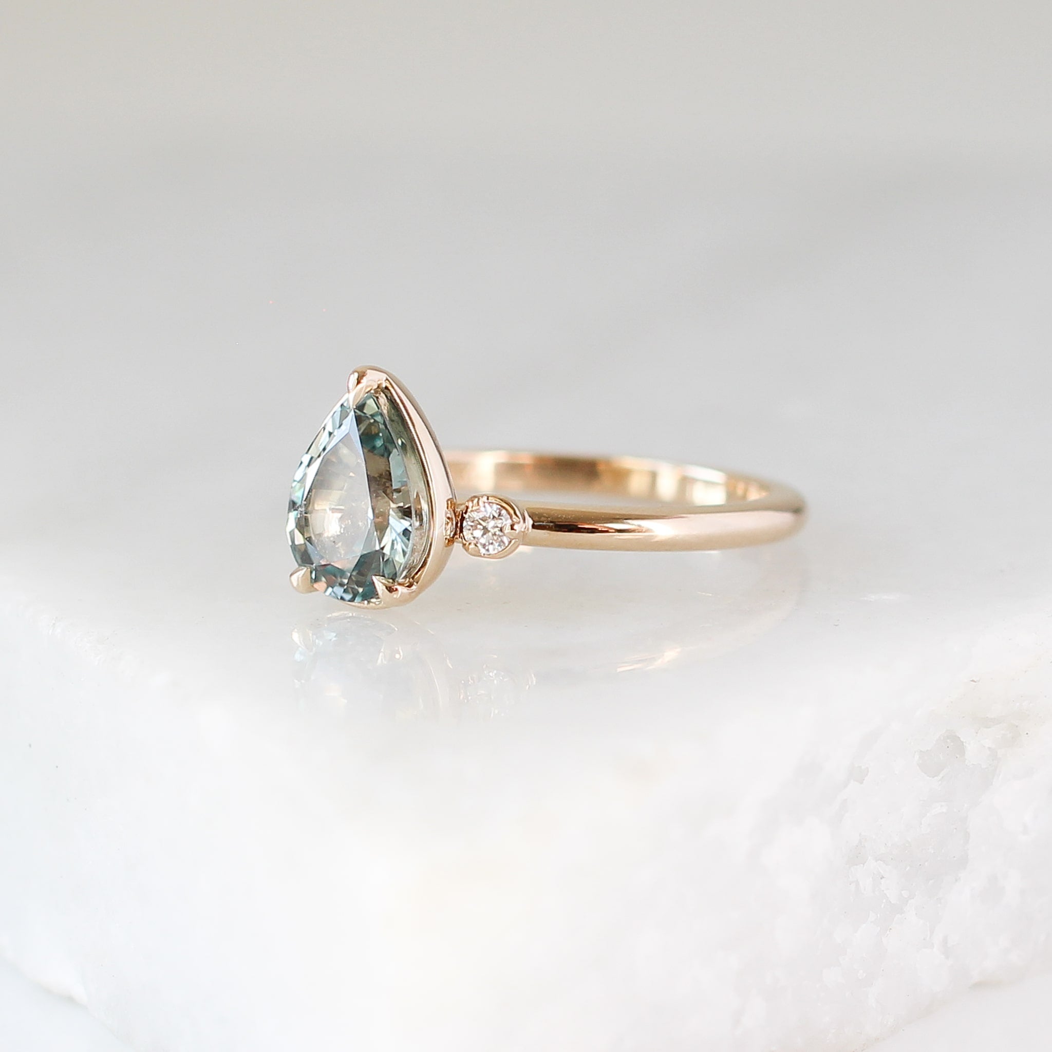 - 1.62ct natural light green pear cut sapphire (9x6.75mm)