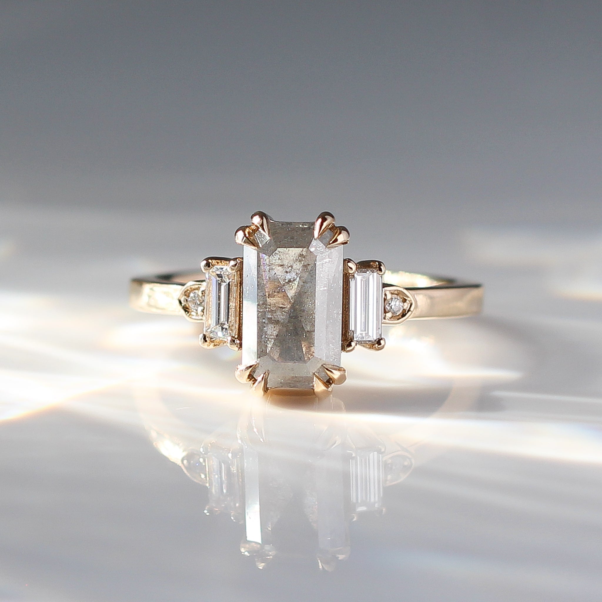 - 2.06ct emerald cut salt & pepper natural diamond (9.31x5.59mm)