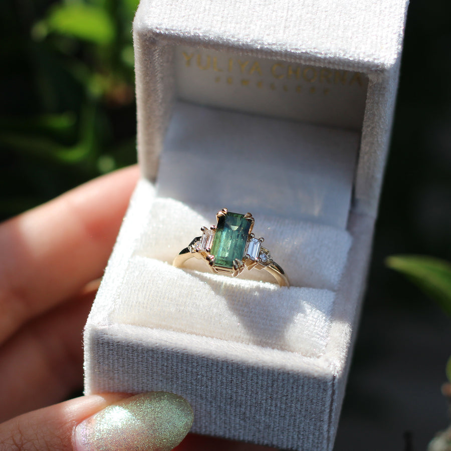 2.99ct Misceo Emerald Cut Green Sapphire Ring