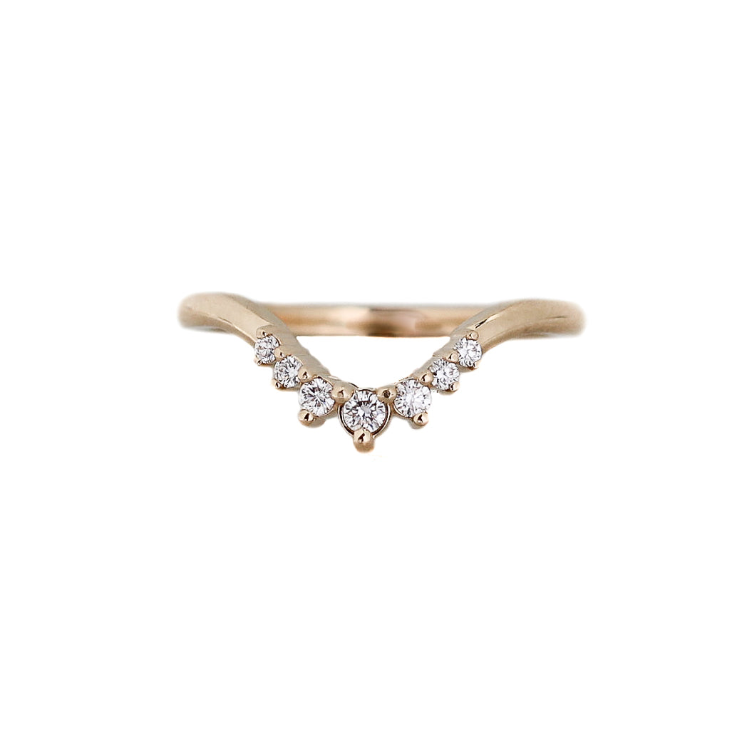 Our Sahara diamond crown contour band only with a deeper curve and seven basket set round brilliant cut Canadian diamonds. Fits around larger sized centre stones. Wear it with a large sized setting or rock it solo as a statement piece.