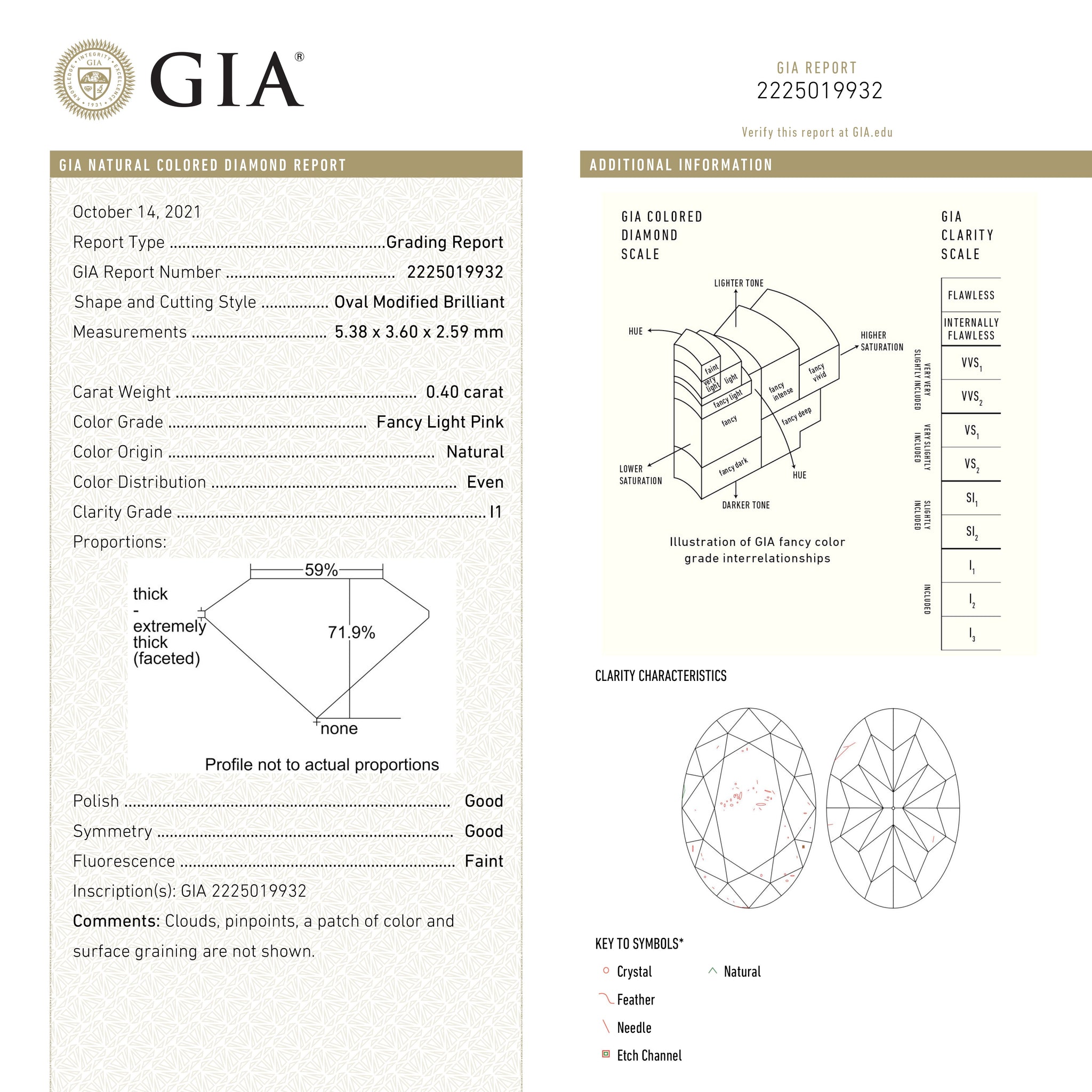 0.40ct 5.38x3.60x2.59mm GIA I1 Fancy Light Pink Oval Brilliant 24094-01