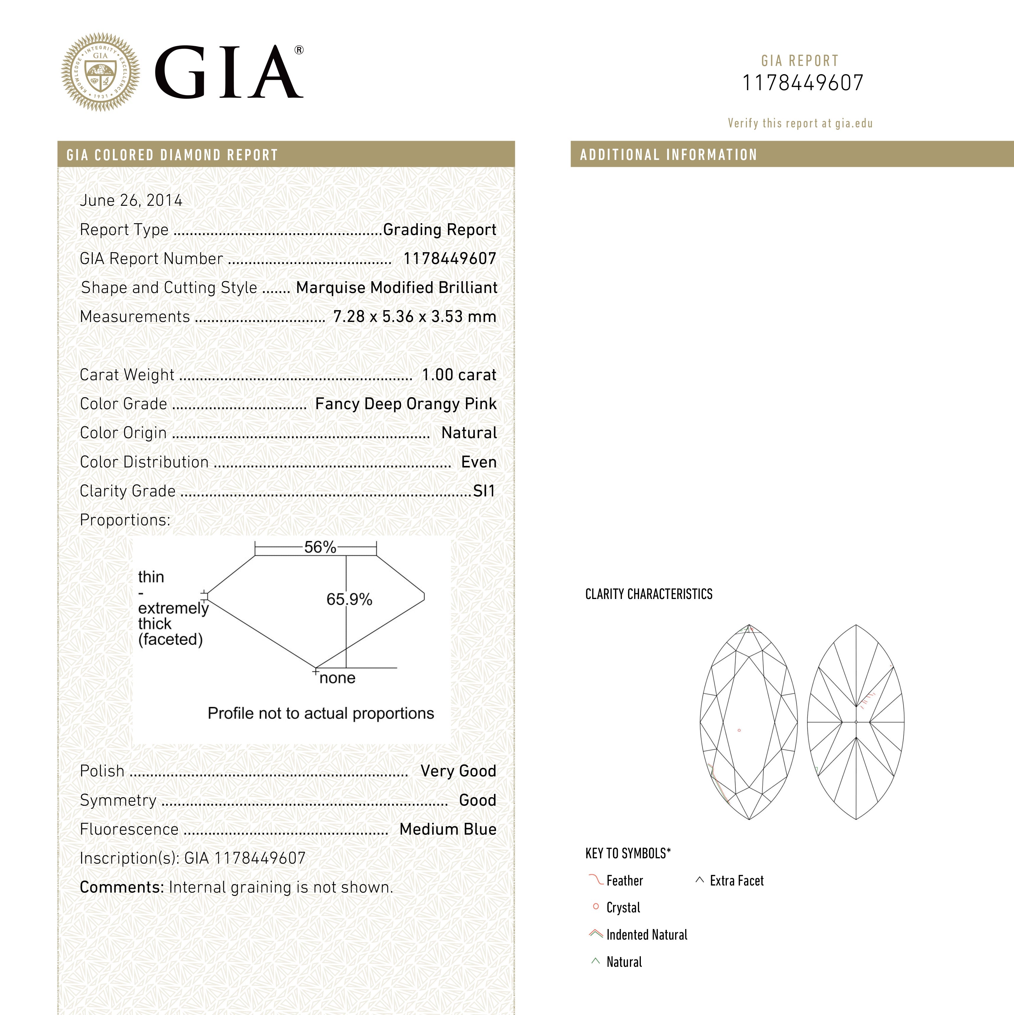 1.00ct 7.28x5.36x3.53mm GIA SI1 Fancy Deep Orangy Pink Marquise Brilliant 🇦🇺 24109-01