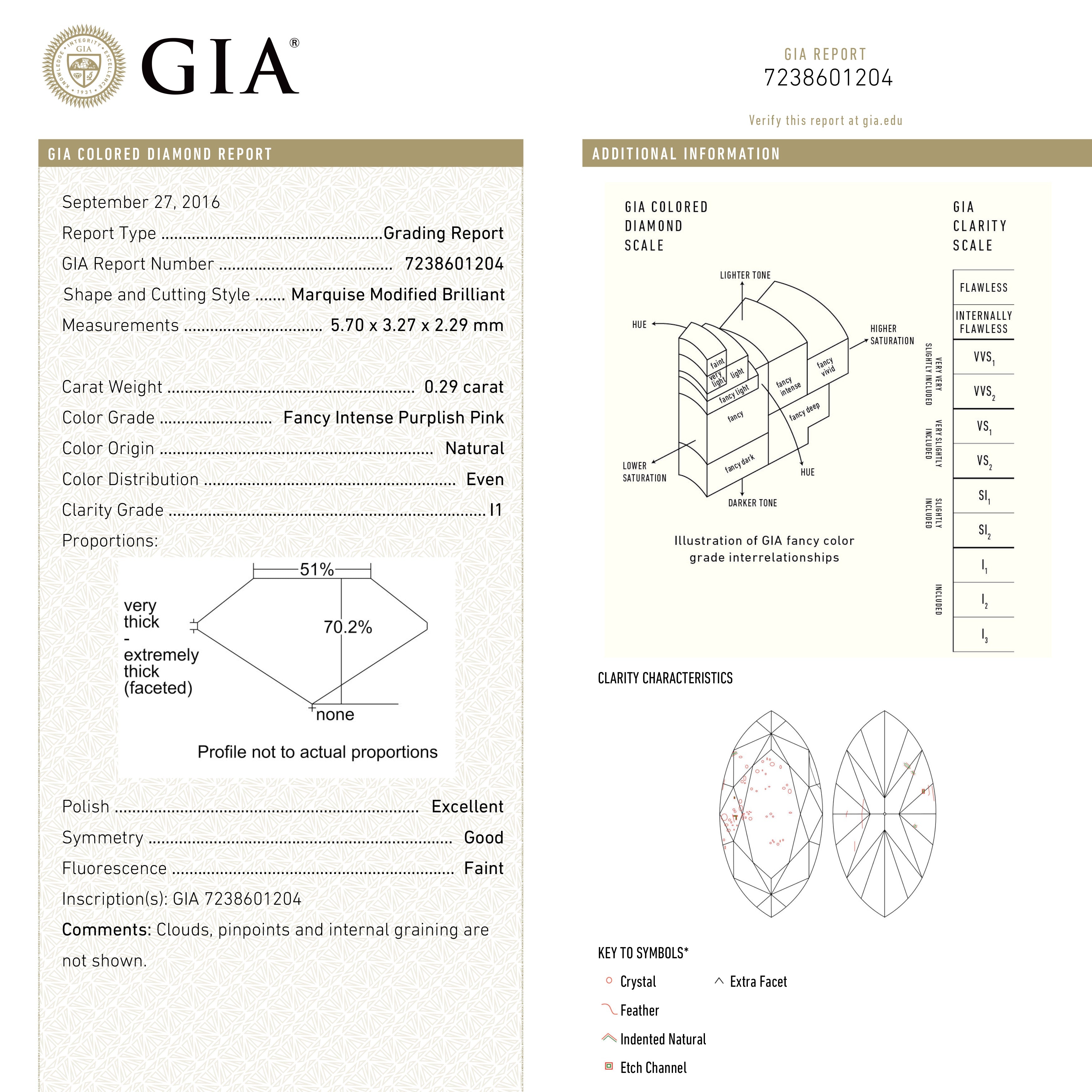 GIA Fancy Intense Purplish Pink Marquise Brilliant