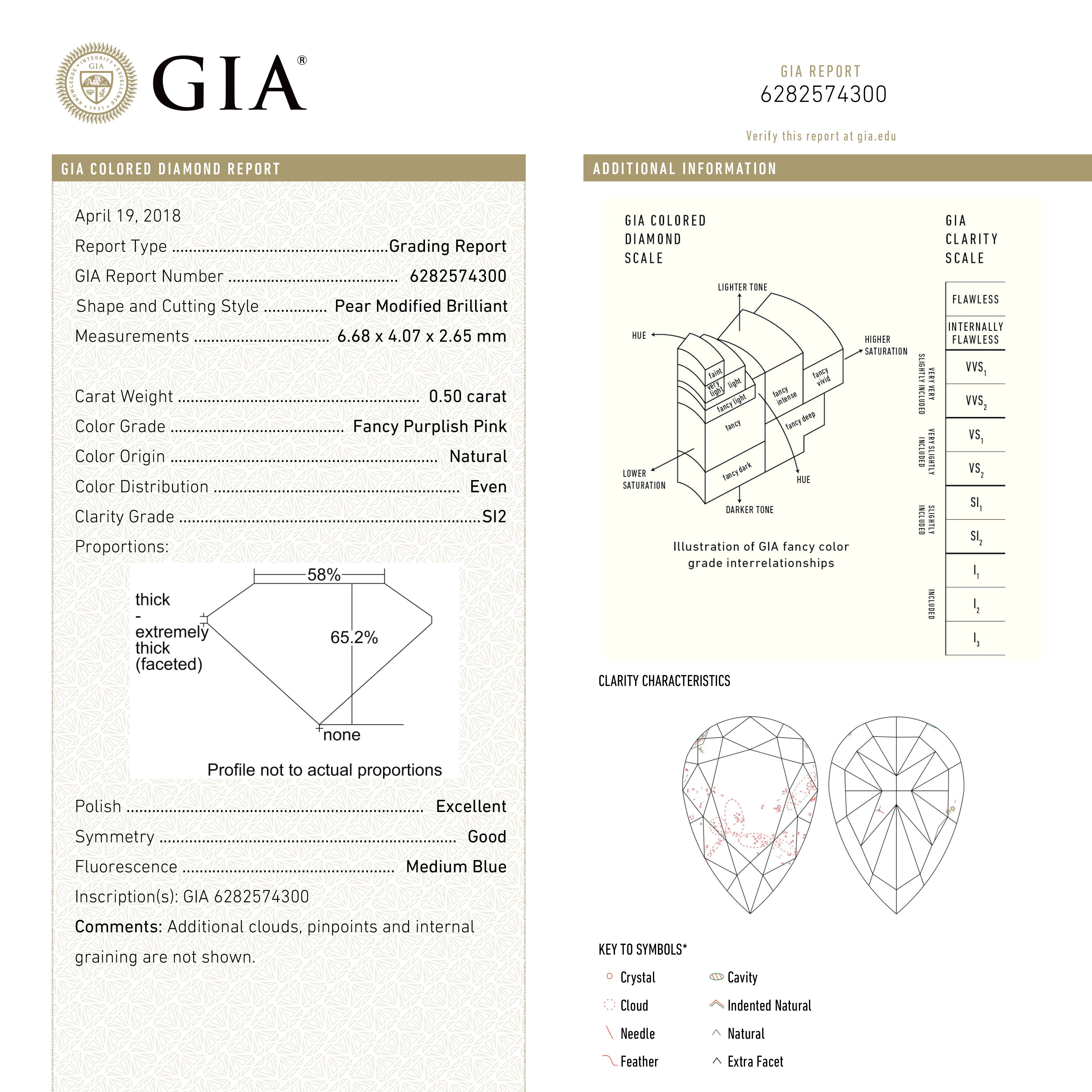 0.50ct 6.68x4.07x2.65mm GIA SI2 Fancy Purplish Pink Pear Brilliant 🇦🇺 24125-01